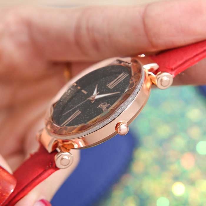 Montre Minimaliste Starry Sky pour Femme - Mode Décontractée Bracelet Cuir Quartz Rouge