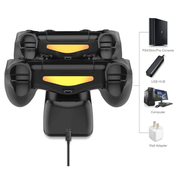 Grâce à sa construction robuste, la station de charge peut prendre un coup, et avec la connexion USB pratique, la station de charge fonctionne non seulement avec la PlayStation 4, mais aussi avec tout autre port d'alimentation USB tel que votre ordinateur.