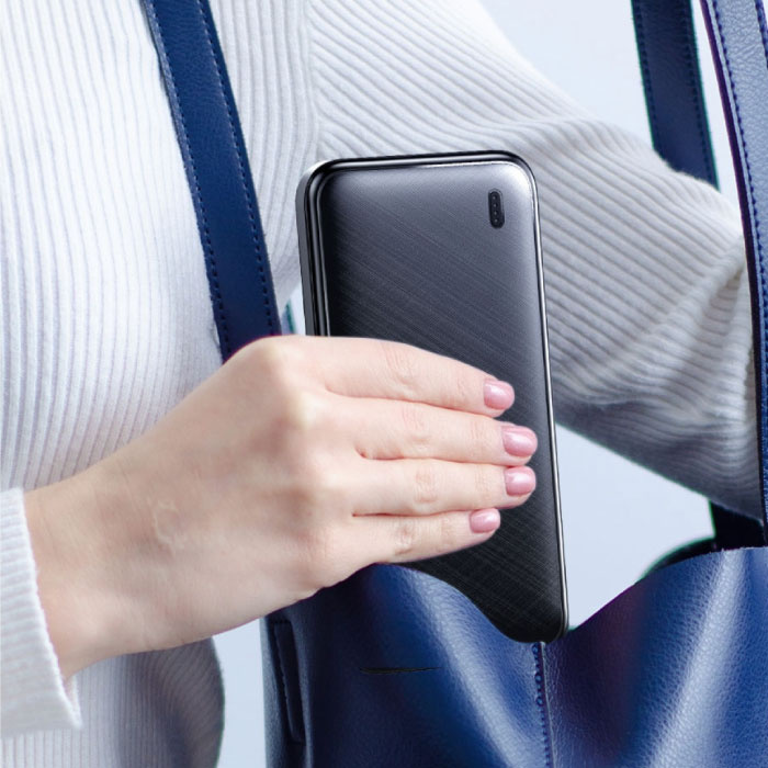 Grâce à la capacité de la batterie de 10 000 mAh, la banque d'alimentation dure très longtemps, vous avez toujours trois recharges complètes de votre iPhone ou smartphone dans votre poche. L'indicateur dans le coin indique la charge actuelle de la batterie.