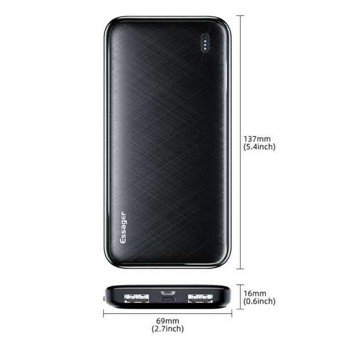Avec la banque d'alimentation Essager, vous évitez que la batterie de votre smartphone ne s'épuise et que vous ne soyez plus joignable à mi-journée. Utilisez la banque d'alimentation pendant le travail, en vacances ou lors de vos déplacements en transports en commun sans aucun problème. La banque d'alimentation est très compacte, facile à emporter partout avec vous.
