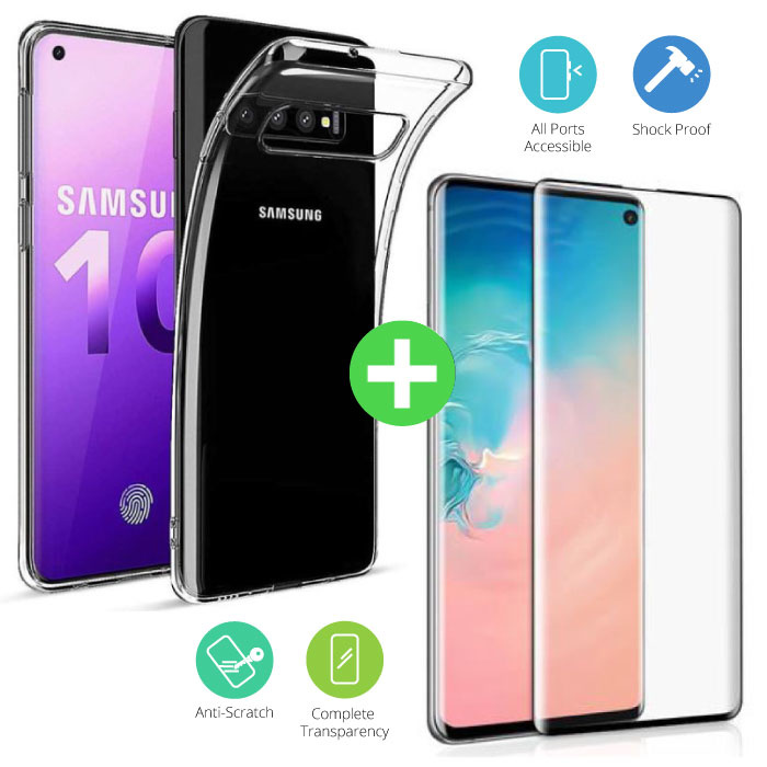 Coque TPU transparente Samsung Galaxy S10 + Protecteur d'écran en verre trempé