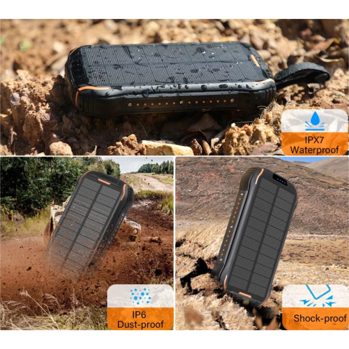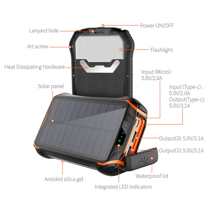 Solar Power Bank con 3 Porte 26.800mAh - Torcia Incorporata - Caricabatteria Caricabatteria Esterno di Emergenza Arancione Sole