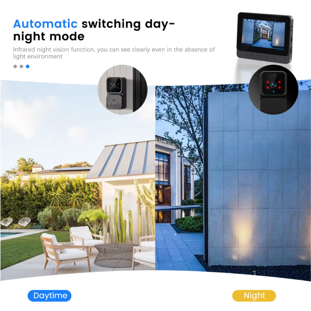 Rendi la tua casa più sicura e confortevole con questo campanello wireless intelligente con citofono e telecamera. Grazie alla sua facile installazione e alle sue funzioni intelligenti, puoi sempre vedere chi c'è alla porta, ovunque tu sia. Il display IPS nitido e la comunicazione bidirezionale garantiscono il massimo controllo e facilità d'uso.