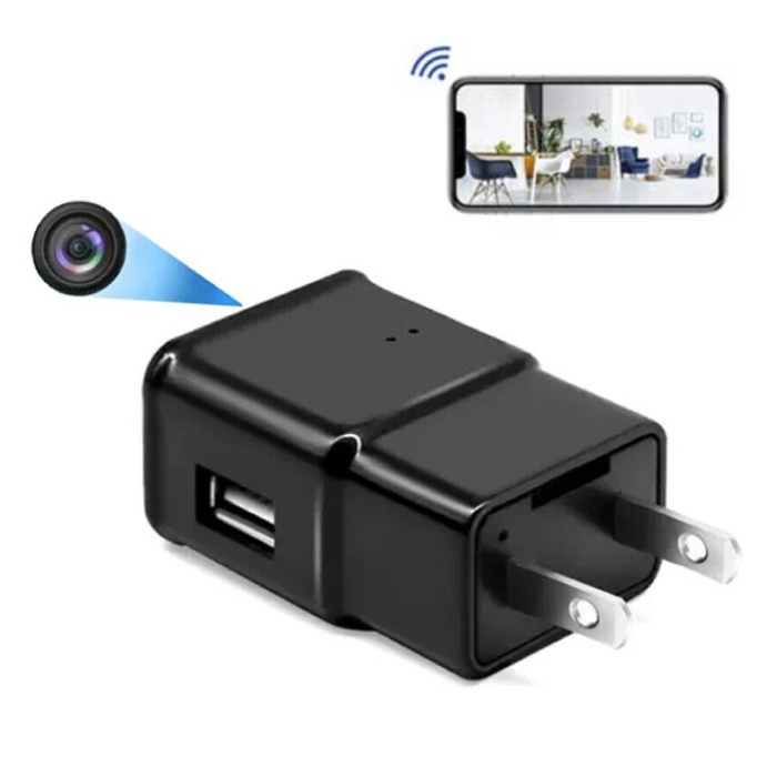 Caricatore USB con telecamera di sicurezza - Rilevatore di movimento videocamera HD 1080p allarme nero