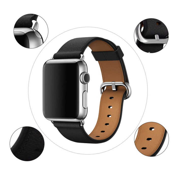 Cinturino in pelle per iWatch 38 mm - Cinturino cinturino in pelle resistente cinturino in acciaio inossidabile fibbia nera