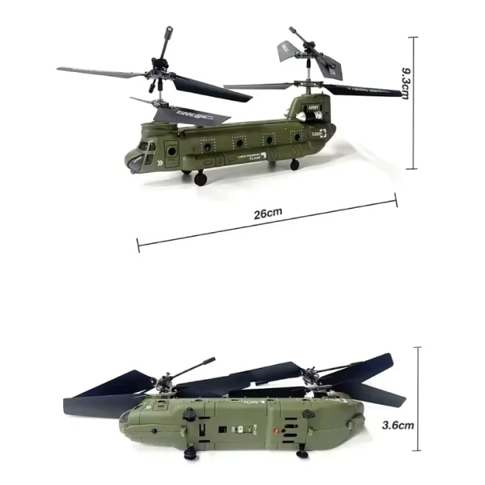 Scopri l' elicottero RC Syma S26H , la scelta perfetta per emozionanti avventure aeree! Questo dettagliato modello Chinook Heavy Duty in un fantastico colore verde offre un'azione realistica e funzioni facili da usare, ideali per bambini e adulti.
