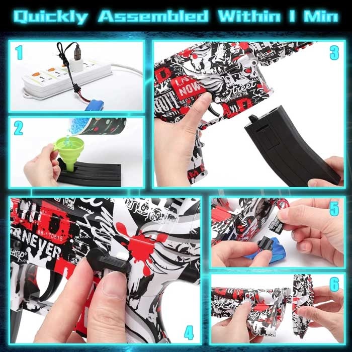 Il blaster presenta un design accurato, ispirato a un M416 , ed è una fantastica alternativa alle pistole da paintball o Nerf, dal prezzo accessibile e senza bisogno di pulizie inutili. I pallini sono realizzati in un materiale gel sicuro e atossico e non danneggiano gli indumenti.