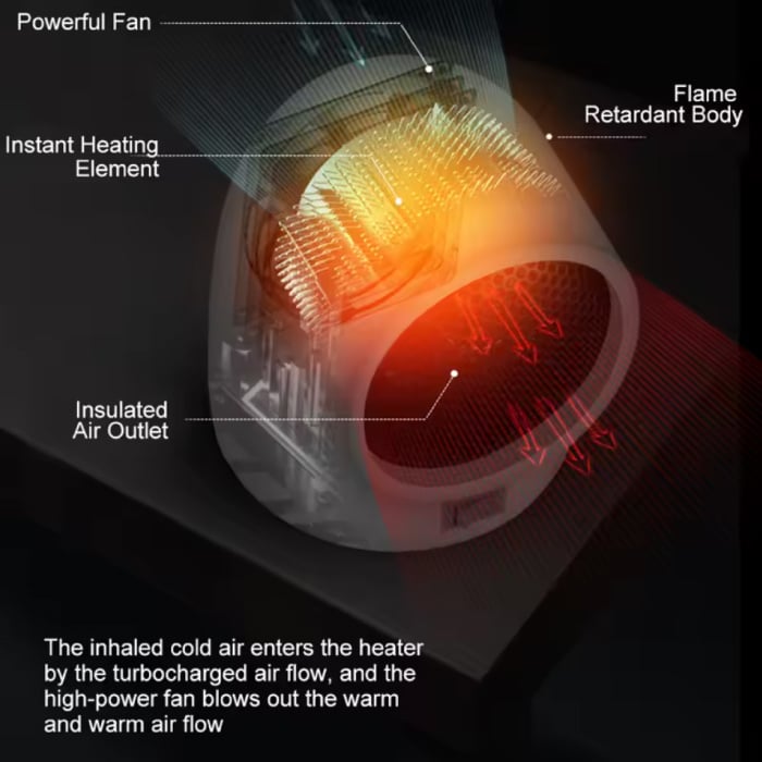 Misurando solo 18 x 14 x 10 cm, questa stufa si adatta perfettamente alla tua scrivania, comodino o tavolo da lavoro. Portalo semplicemente con te e posizionalo esattamente dove hai bisogno di calore.