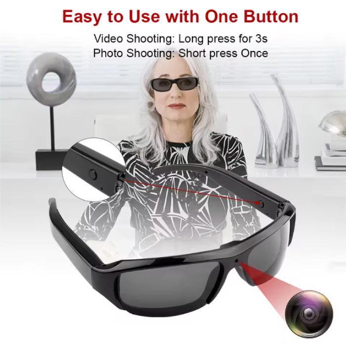 Scopri la Sunglasses Camcorder: la combinazione perfetta di stile e tecnologia! Grazie a questi occhiali da sole alla moda con fotocamera HD 1080p integrata, potrai catturare ogni momento senza sforzo, ovunque tu sia.