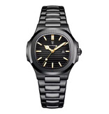 Orologio al quarzo quadrato di lusso - Impermeabile 3 ATM, luminoso, da uomo, da donna, unisex, in acciaio inossidabile - Oro