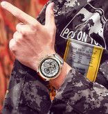 Orologio Anologue - Cinturino in pelle, movimento al quarzo di lusso per uomo - Acciaio inossidabile - Arancione-Argento