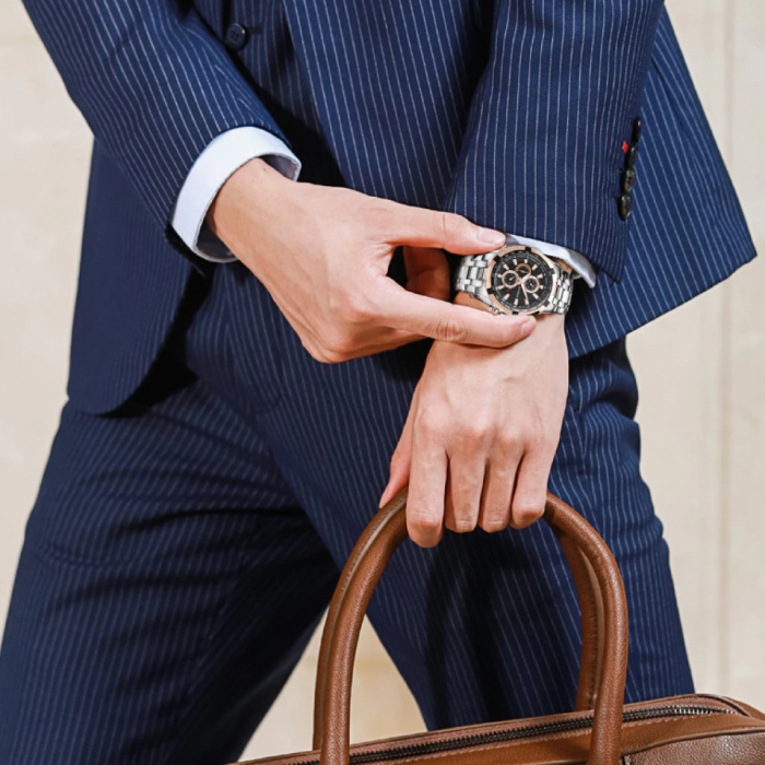 Questo esclusivo orologio da uomo ha una robusta cassa in acciaio inossidabile. Ogni dettaglio dell'orologio è stato accuratamente elaborato in modo che il design risalti.