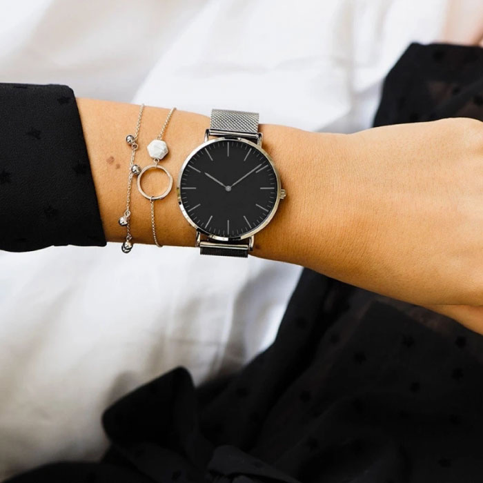 Orologio minimalista da donna - Cinturino in pelle movimento al quarzo alla moda nero