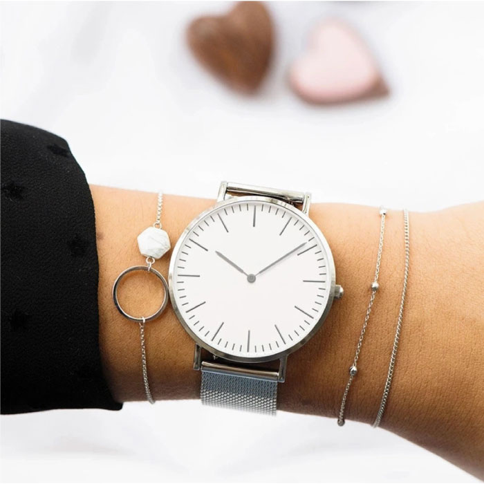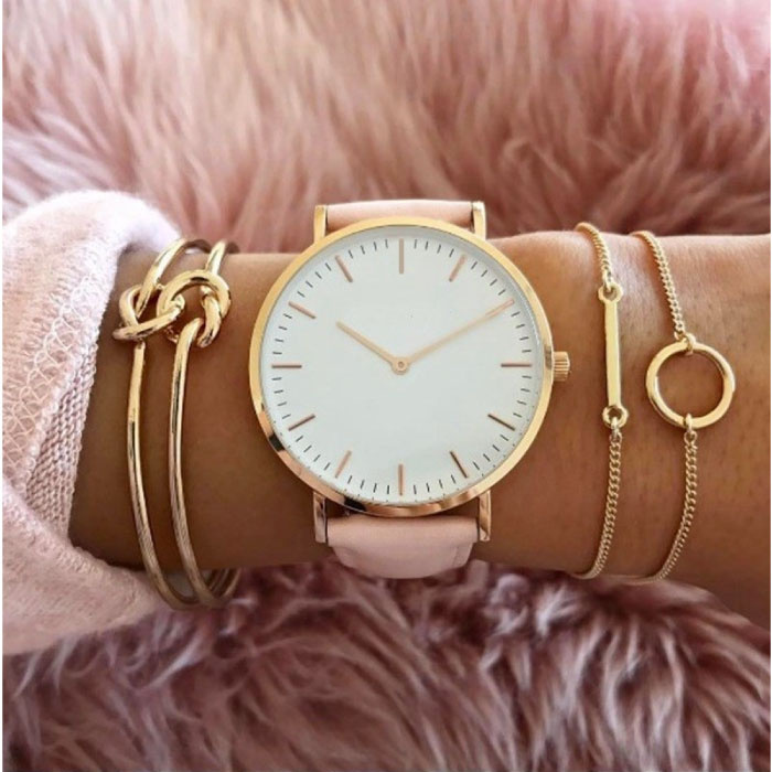 Il design minimalista di questo orologio è intramontabile e versatile, rendendolo perfetto per ogni occasione e outfit. Il quadrante elegante con segni chiari offre un aspetto semplice ma sofisticato. Le lancette sottili e il cinturino in pelle abbinato aggiungono un tocco di lusso all'insieme.