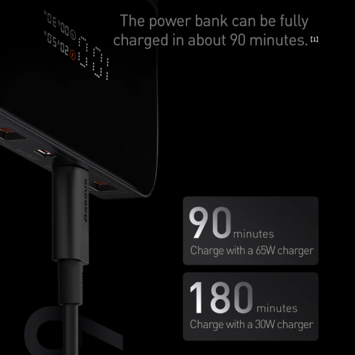 È possibile caricare quattro dispositivi contemporaneamente grazie alle 2 porte di uscita e alle 2 porte di ingresso/uscita; due porte di ricarica USB-C da 30 W e due da 100 W (PD). Il power bank può essere caricato tramite le due porte USB-C in/out con 65 W e può essere ricaricato completamente in soli 90 minuti.