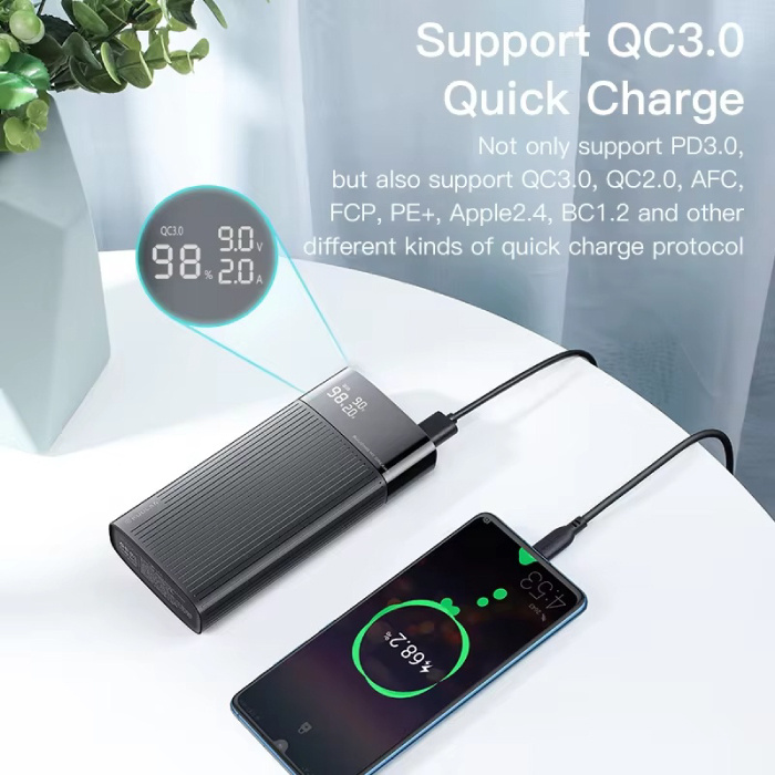 • Capacità della batteria di 20.000 mAh : mantiene i tuoi dispositivi carichi per lunghi periodi di tempo, ideale per i viaggi e l'uso quotidiano.