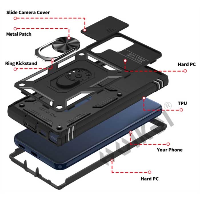 Con questa custodia "heavy duty", l'alloggiamento del telefono è sempre completamente protetto contro le cadute e il contatto con oggetti appuntiti. C'è anche un piccolo spazio all'interno della custodia dove puoi tenere una carta o una carta di credito.