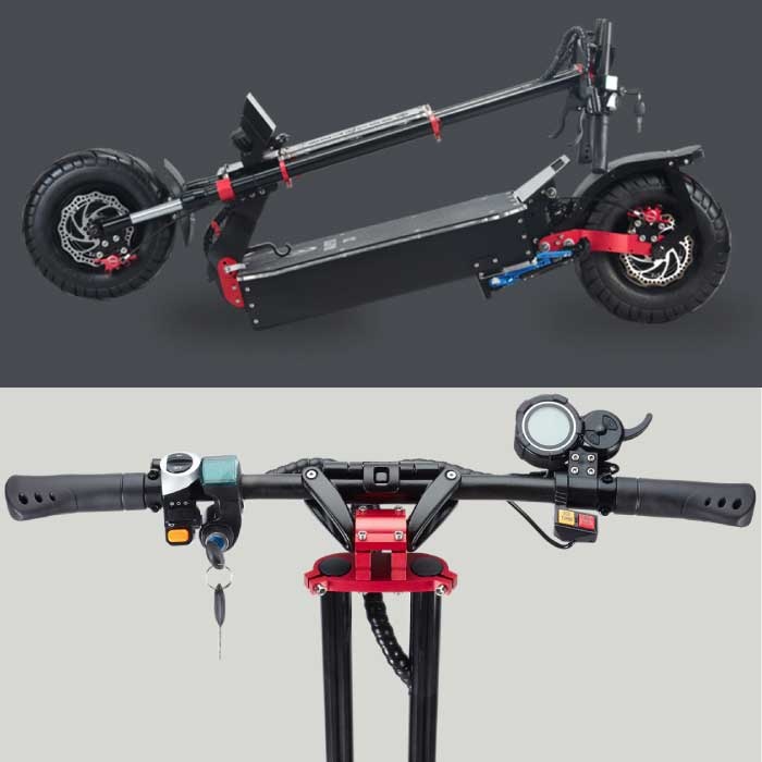 Uno dei principali punti di forza dello scooter è la sua dimensione compatta e pieghevole . Lo scooter è semplicemente piegato; puoi portarlo facilmente al lavoro, salire su un autobus o in treno, in ufficio, ecc. Il manubrio può essere sollevato fino a 8 cm per offrire a tutti la giusta altezza.