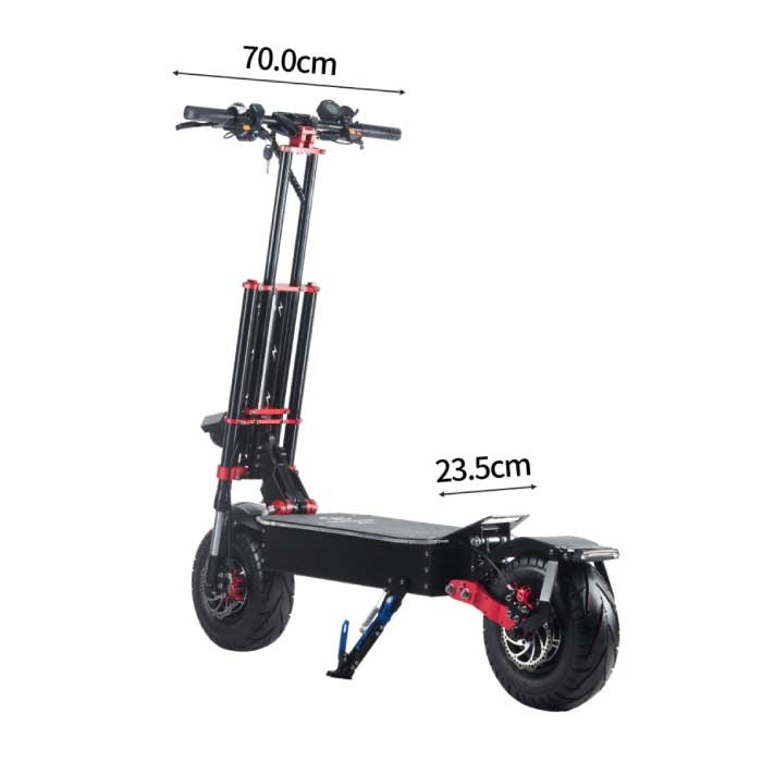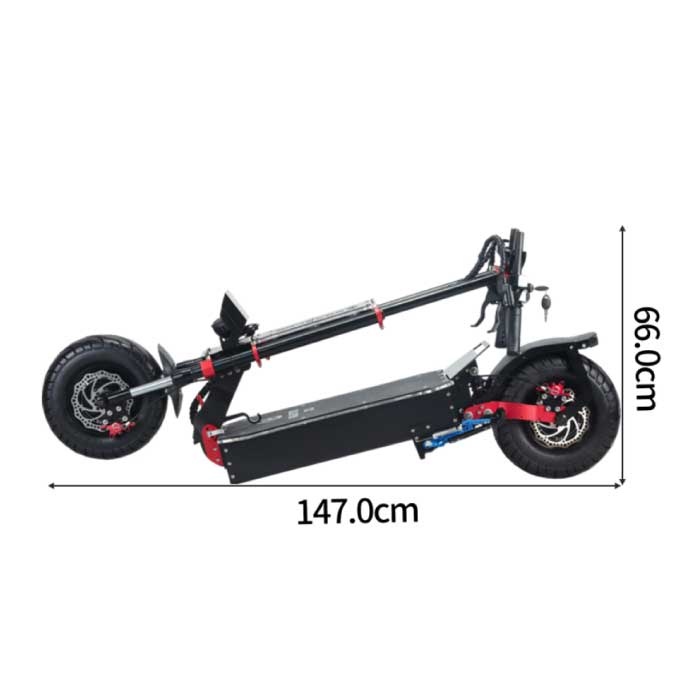 Questo scooter è alimentato da una batteria ricaricabile al litio extra large da 30 Ah . Occorrono dalle 8 alle 10 ore per caricare completamente la batteria e puoi monitorarne lo stato sul display digitale. Grazie al doppio motore da 2800W , lo scooter può raggiungere velocità di 85 km/h , e grazie alla capiente batteria si possono percorrere fino a 75 km con una sola carica .