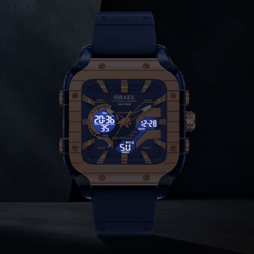 Het SMAEL 8133 horloge is 5 Bar waterdicht, waardoor het bestand is tegen regen, handen wassen en spatwater. Dankzij de keuze tussen een 12- of 24-uurs tijdsweergave pas je het horloge eenvoudig aan jouw voorkeur aan.
