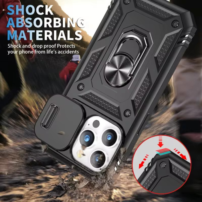 Bescherm je iPhone met het stijlvolle en robuuste Armor Hoesje. Dit heavy duty hoesje biedt optimale bescherming en functionaliteit, inclusief een kickstand, camera slide, en magnetische grip.