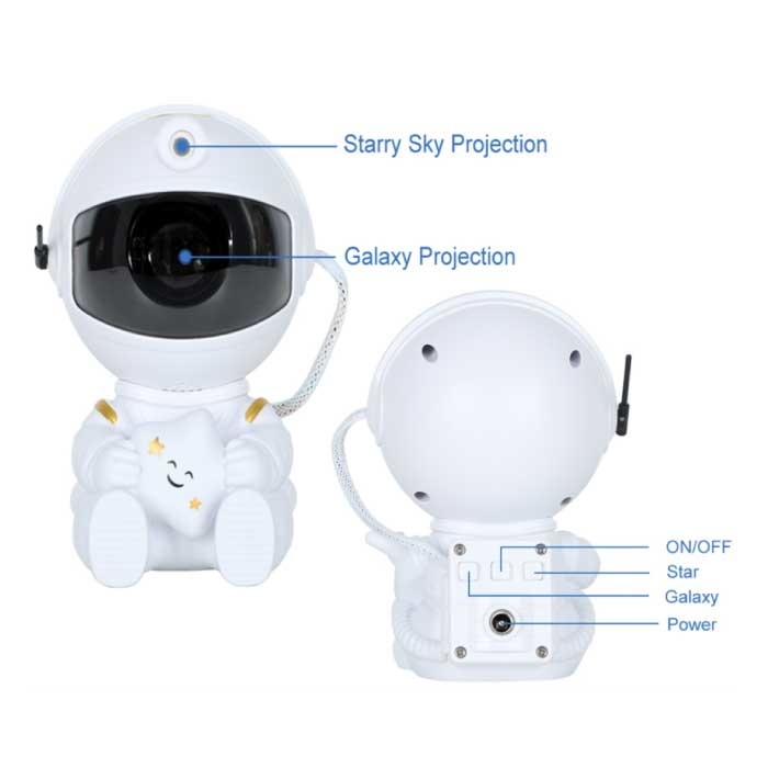 Astronaut met Ster - Sterren Ruimte Projector met Afstandsbediening - Sterrenhemel Sfeerlamp Wit