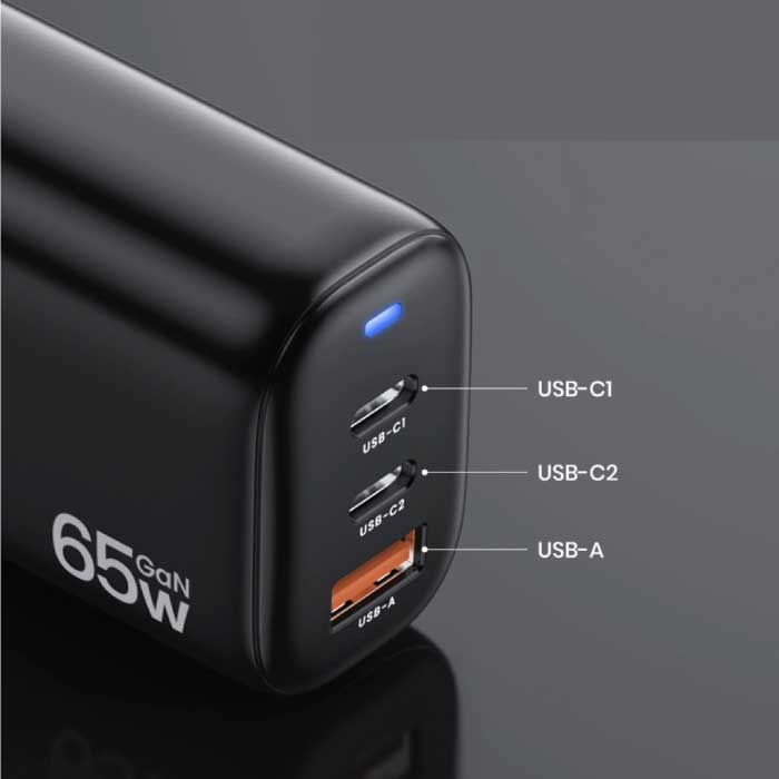 De lader beschikt over twee USB-C poorteen met tot 65W PD (Power Delivery). De nieuwe PD oplader is dé opkomende standaard voor het opladen van apparaten met nog hogere laadsnelheden dan Quick Charge 3.0!