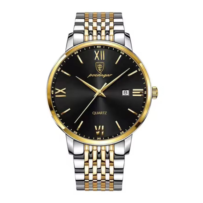 Poedagar Roestvrij Staal Horloge voor Heren - Lichtgevend Luxe Uurwerk Waterdicht Kwarts Goud Zilver