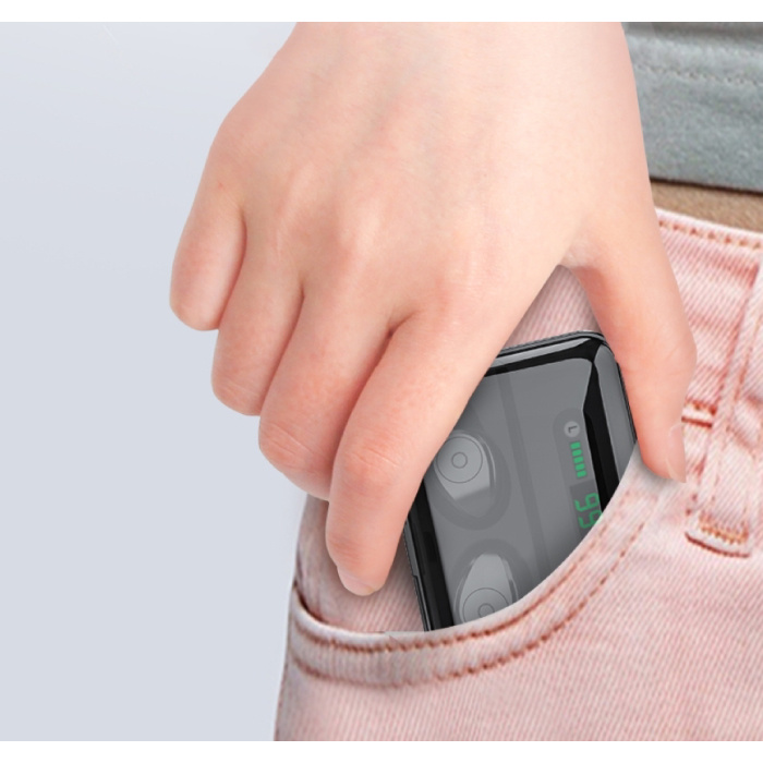 Met het 3000mAh oplaaddoosje kan u niet enkel de earphones opladen, maar u kan deze ook gebruiken als powerbank voor uw smartphone. In het doosje zit een handige batterij status indicator om te zien hoeveel stroom er nog op staat.