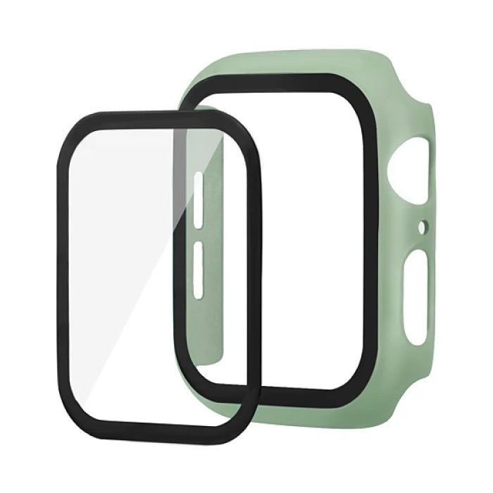 Full Cover voor iWatch Series 40mm - Hoesje en Screen Protector - Tempered Glass Hard Case TPU Lichtgroen