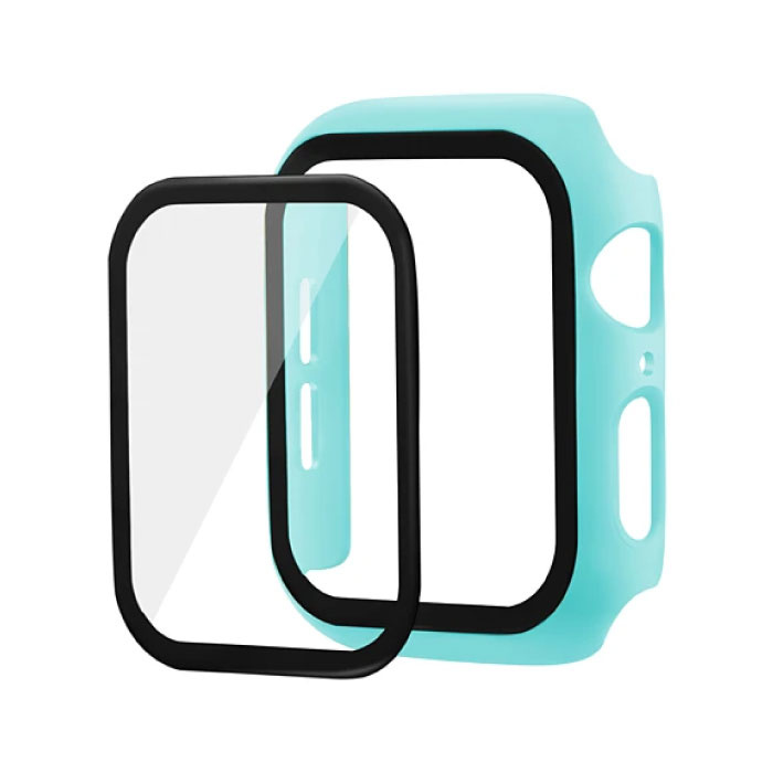 Full Cover voor iWatch Series 42mm - Hoesje en Screen Protector - Tempered Glass Hard Case TPU Lichtblauw