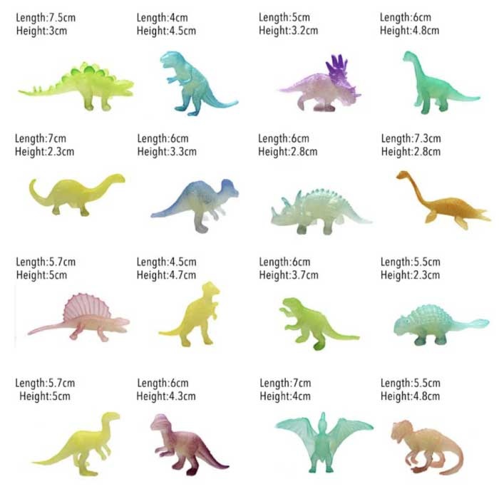 Het pakket bevat maar liefst 16 lichtgevende dino's, elk met een verschillende vorm en kleur. Elke dino van de speelgoedset ziet er levensecht uit met uitstekende details, leuk om te gebruiken voor verhalen te vertellen. Neem je kinderen mee naar het tijdperk van de dinosaurus!