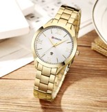 Gouden Luxe Horloge voor Dames - Roestvrij Staal Armband 3 ATM Kwarts Polshorloge Rose Gold Wit