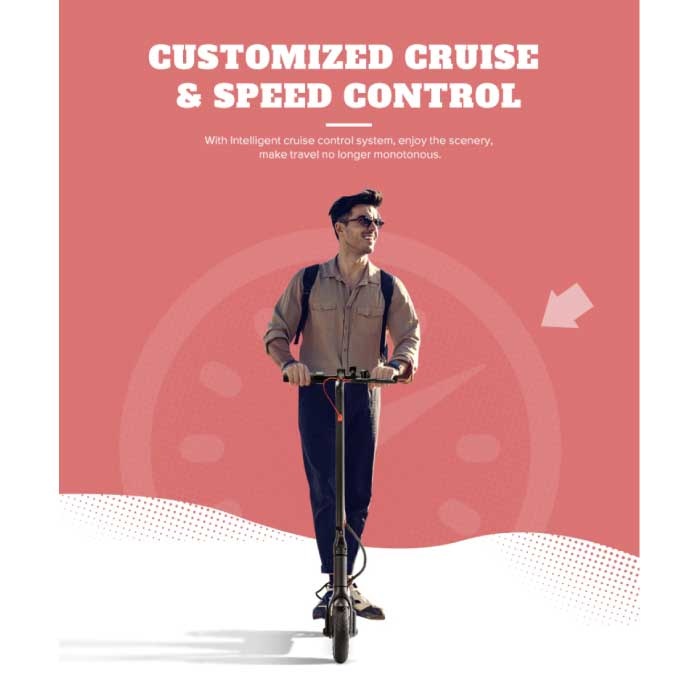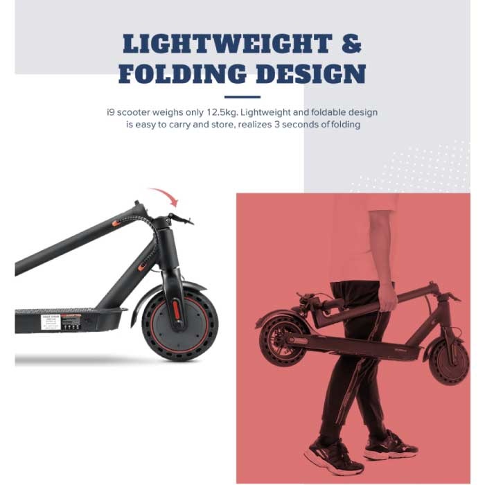 De banden maken geen gebruik van lucht, zo moet je je geen zorgen maken over gaatjes of platte banden. Dankzij de dubbele 350W motor haalt de step snelheden tot 30 km/u, en met de grote batterij gaat u tot 25 km ver in één oplaadbeurt. Met de iScooter I9 heb je bovendien toegang tot instelbare cruise control, zo kan je zelf een snelheid instellen.