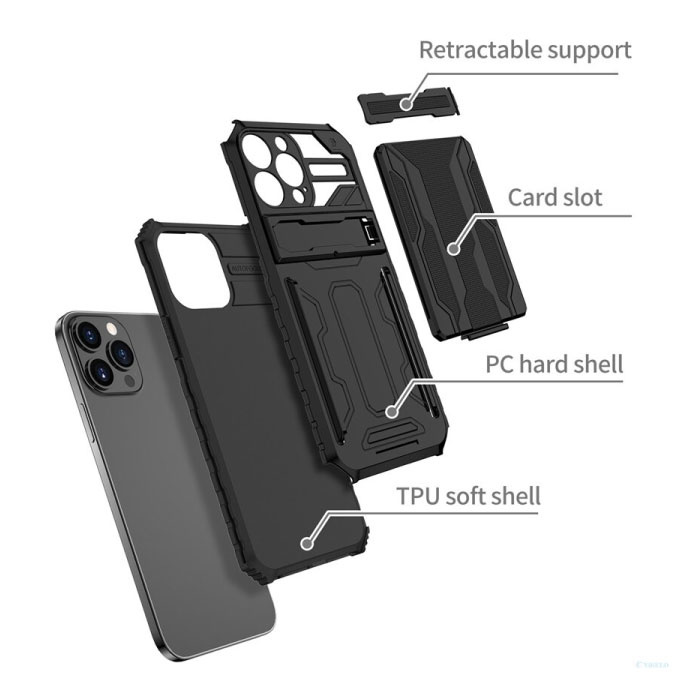 Met deze ultrabeschermende absorption hard case is uw iPhone veiliger dan ooit tevoren! Het hoesje is voorzien van een easy-access ruimte op de achterkant om belangrijke kaarten of contant geld in te bewaren.