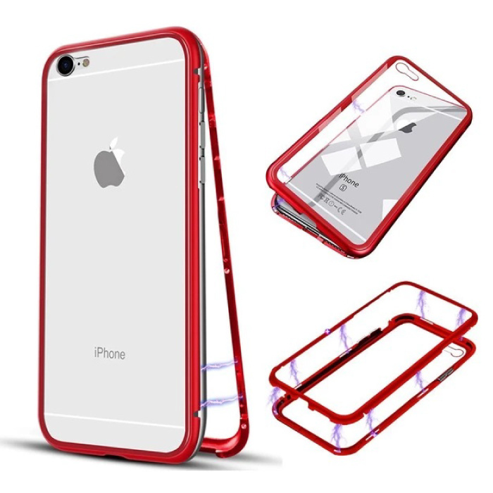 iPhone 6 Magnetisch 360° Hoesje met Tempered Glass - Full Body Cover Hoesje + Screenprotector Rood