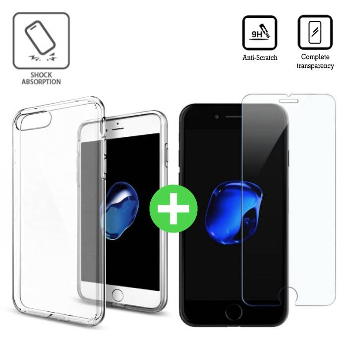 iPhone 7 Plus Transparant TPU Hoesje + Screen Protector Tempered Glass