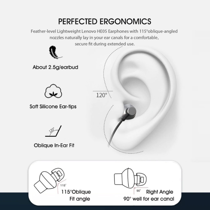 De Lenovo HE05 draadloze oortjes met Bluetooth 5.0 hebben de perfecte vorm voor elk oor, ze werden ontworpen met een scherp oog voor ergonomie. Ze zijn duurzaam van bouwkwaliteit en bieden een uiterst hoogstaande luisterervaring voor al uw favoriete muziek.