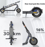 Dankzij de dubbele 300W motor haalt de step snelheden van 25 km/u, en dankzij de grote batterij gaat u tot 30 km ver in één oplaadbeurt. 's Nachts rondrijden in het donker kan ook gewoon perfect met de ingebouwde reflector koplamp.