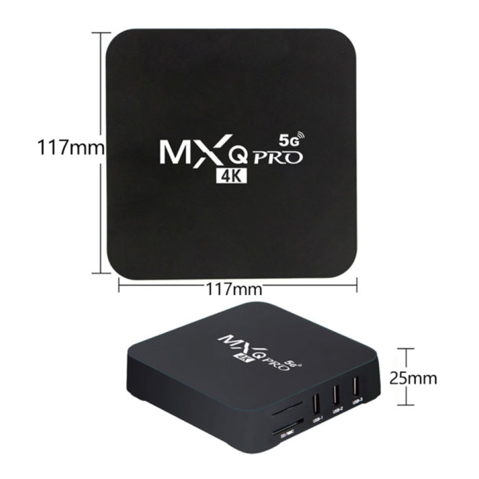 | Pakket bevat: | 1x MXQ Pro TV box 1x Draadloos RGB Toetsenbord 1x Afstandsbediening 1x Europese oplader 1x HDMI-kabel 1x Handleiding |