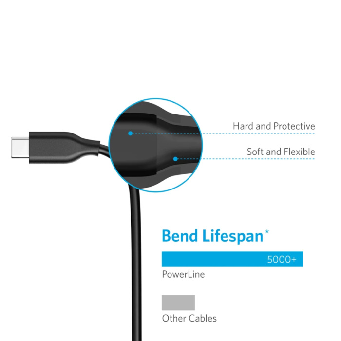 Oplaadkabel stuk? Wees gerust, met de ANKER Powerline kabel bent u verzekerd van een lange levensduur, u kan ermee uw telefoon snel opladen en data overzetten aan een snelheid van 5 Gbps! Dankzij de verdikte kabel en het versterkte kopstukje is de kabel super duurzaam.
