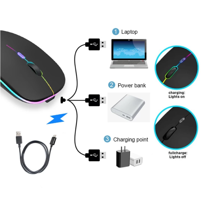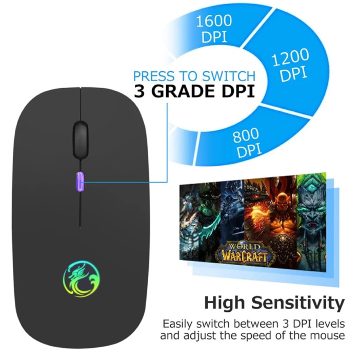 RGB Bluetooth Gaming Muis - Draadloos Optisch Tweehandig Ergonomisch met DPI Aanpassing - 1600 DPI - Zwart