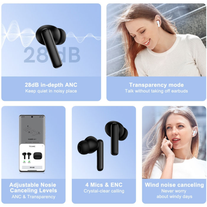 T13 ANC Draadloze Oortjes - Bluetooth 5.3 Oordopjes - Earbuds Oortelefoon Zwart