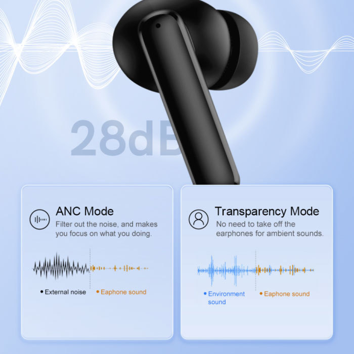 Actieve Ruisonderdrukking (ANC) met Transparantie Modus: Ervaar de kracht van 28 dB actieve ruisonderdrukking die zelfs op winderige dagen uitstekend presteert. Sluit de wereld om je heen buiten en geniet van je muziek zonder afleiding. De Transparantie Modus houdt je bewust van je omgeving wanneer dat nodig is.