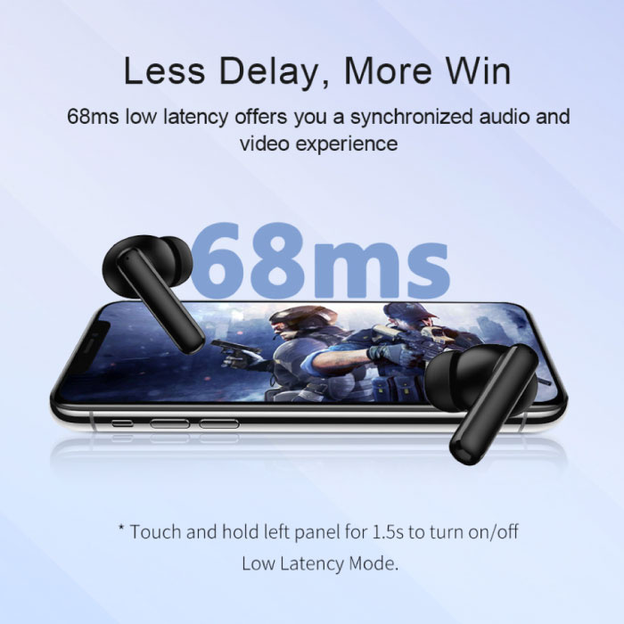 Bluetooth 5.3 & 68ms Lage Latentie: Met Bluetooth 5.3-technologie en een verwaarloosbare vertraging van slechts 68ms geniet je van een naadloze en vertragingsvrije luisterervaring, ideaal voor gaming en video's.