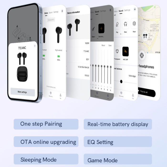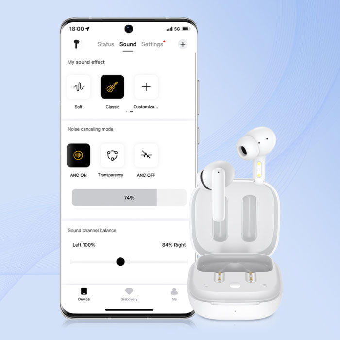 Volledige Geluidsinstellingen via de QCY App: Ontdek een wereld van geluidsafstellingen en aanpassingen met de QCY app op je smartphone. Pas ANC- en transparantie-instellingen aan, ontdek geluidsvoorkeuren en maak de ervaring persoonlijk.