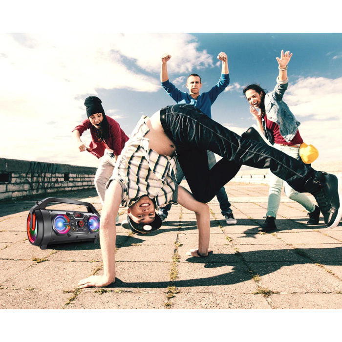 De speaker maakt gebruik van Bluetooth 5.0 om draadloos vanaf je telefoon, tablet of notebook muziek te streamen. Met hulp van Bluetooth kan deze speaker compleet draadloos bediend worden tot 10 meter ver via uw smartphone. De luidspreker kan makkelijk meegenomen worden dankzij het handvat aan de bovenkant.