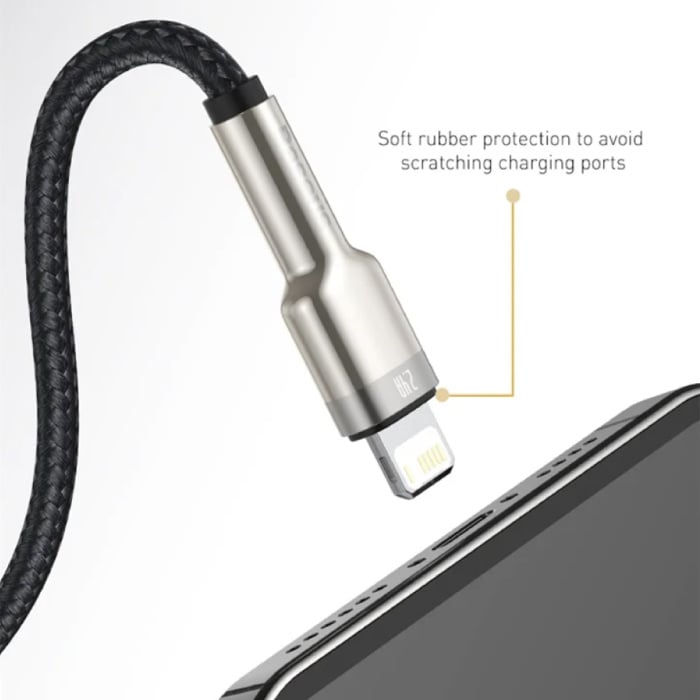 De zachte rubberen bescherming rond de connectoren is ontworpen om krassen op de laadpoorten van je iPhone te voorkomen, waardoor de levensduur van zowel de kabel als het apparaat wordt verlengd. De gevlochten nylon kabel is bovendien duurzaam en bestand tegen klitten, waardoor het de ideale keuze is voor langdurig gebruik.