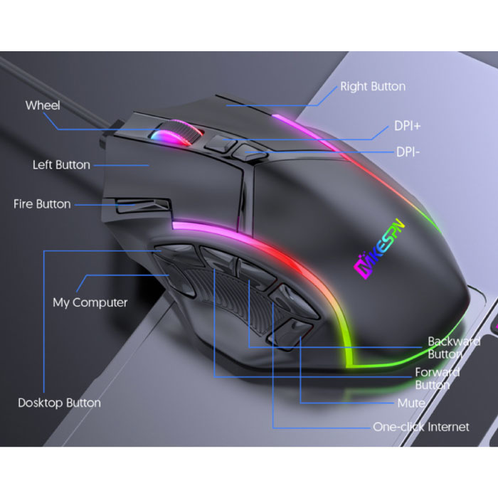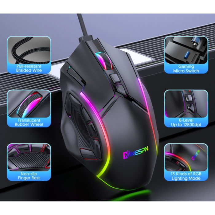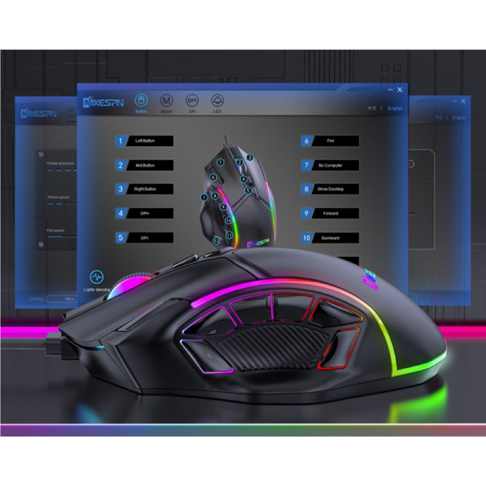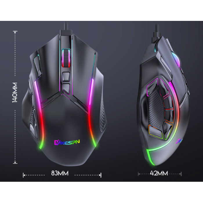 De MKESPN X15 gaming muis is ook voorzien van 13 soorten RGB-verlichting met tot 16,8 miljoen kleuren om uit te kiezen. Dit maakt het mogelijk om de uitstraling van de muis aan te passen aan jouw persoonlijke stijl en de rest van je gaming setup.