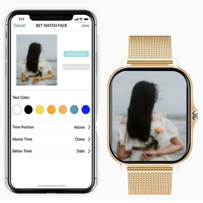 Ekran smartwatcha ma wyraźny wyświetlacz LED. Każdy szczegół tego smartwatcha został starannie dopracowany, aby projekt miał swój własny. Możesz wybierać spośród różnych tarcz zegarka, a nawet dodać zdjęcie, aby ustawić zegarek w swoim własnym stylu.